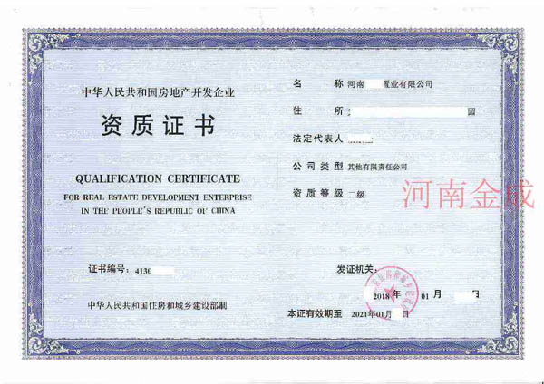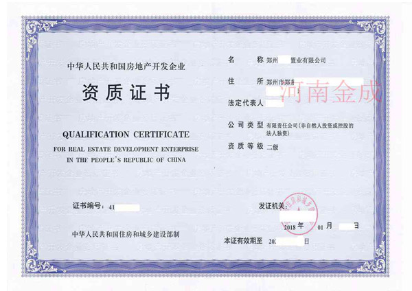 • 房地產(chǎn)二級(jí)資質(zhì)證書(shū)