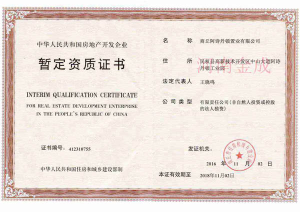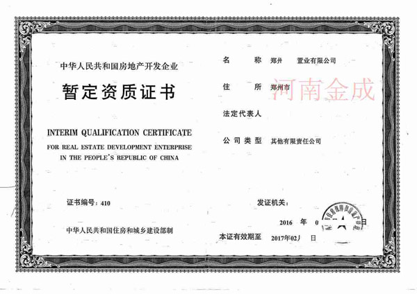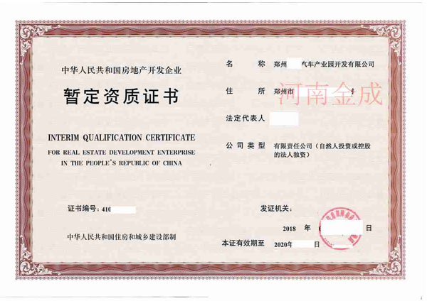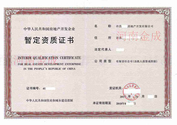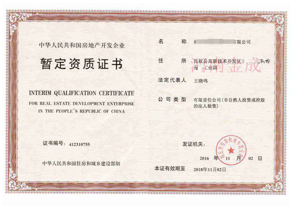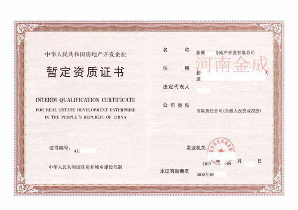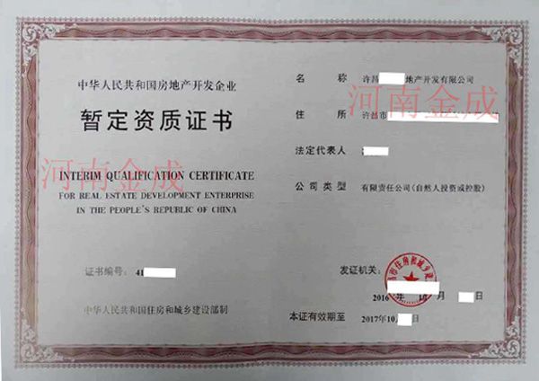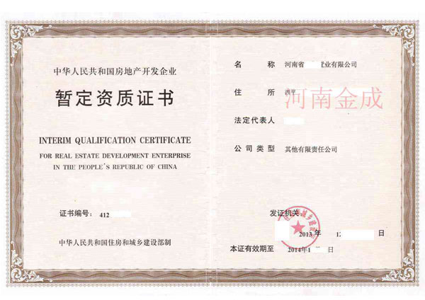 • 房地產(chǎn)暫定資質(zhì)證書(shū)