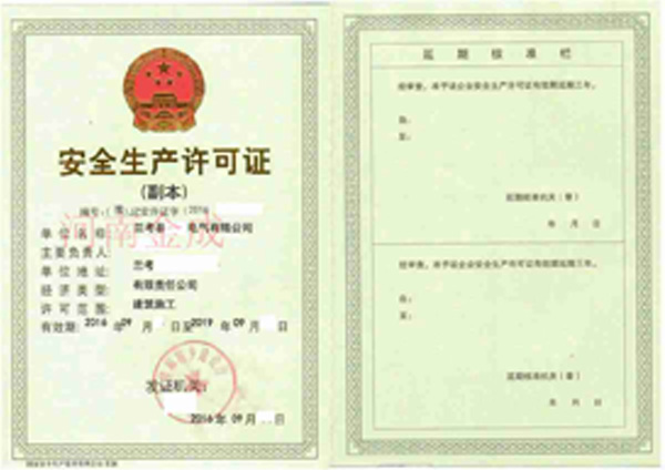• 安全生產(chǎn)許可證副本