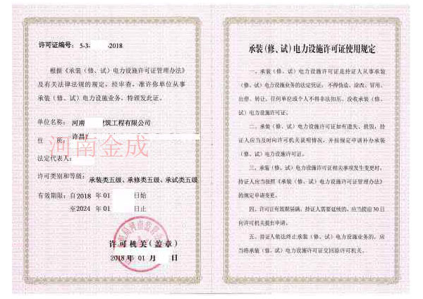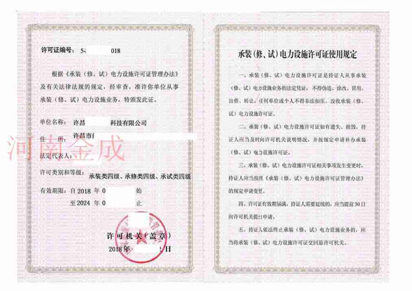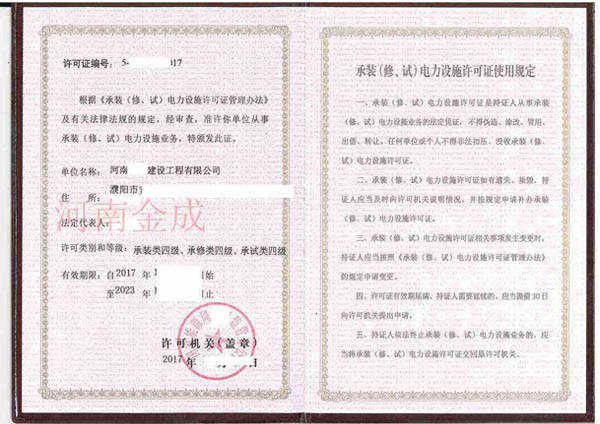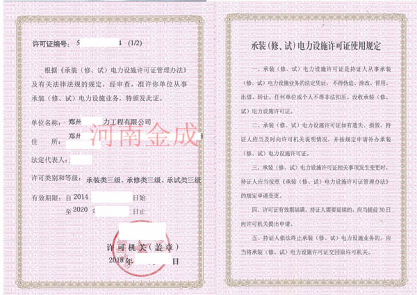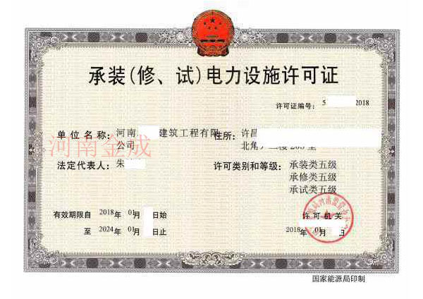 • 承裝(修、試)電力設(shè)施許可證