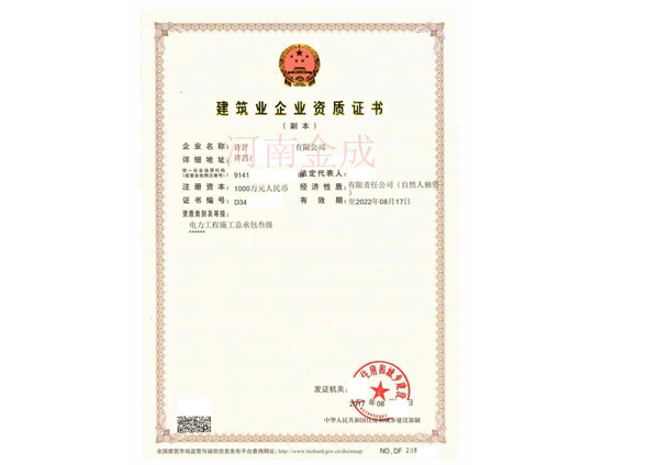 • 建筑業(yè)企業(yè)資質(zhì)證書(shū)副本