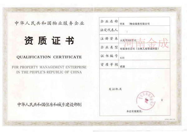 • 物業(yè)二級(jí)資質(zhì)證書(shū)