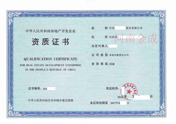 • 房地產(chǎn)四級(jí)資質(zhì)證書(shū)