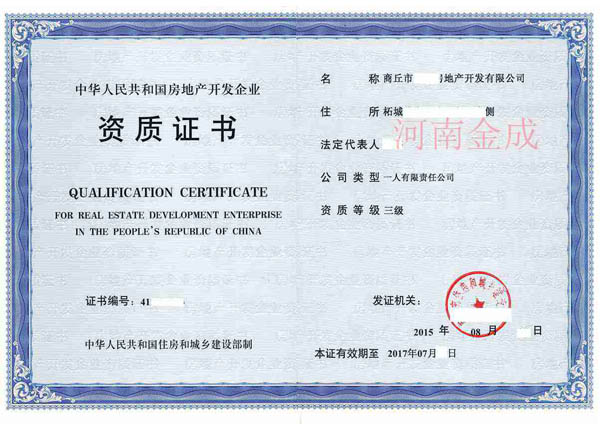 • 房地產(chǎn)三級(jí)資質(zhì)證書(shū)